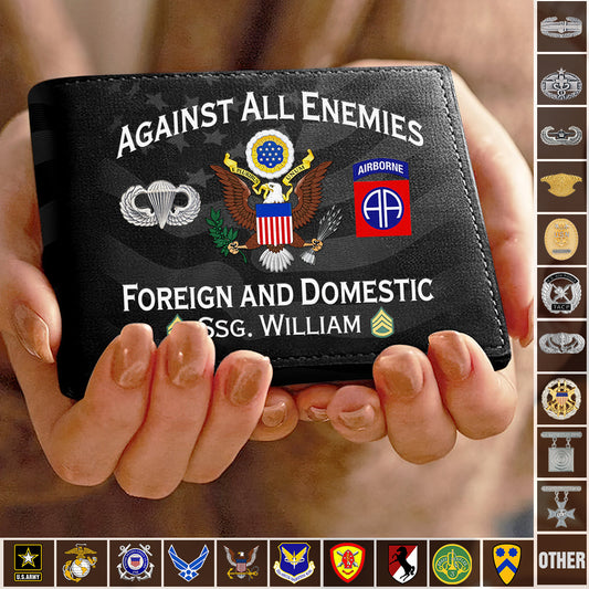 Custom Veteran's Leather Wallet - Against All Enemies, Foreign and Domestic