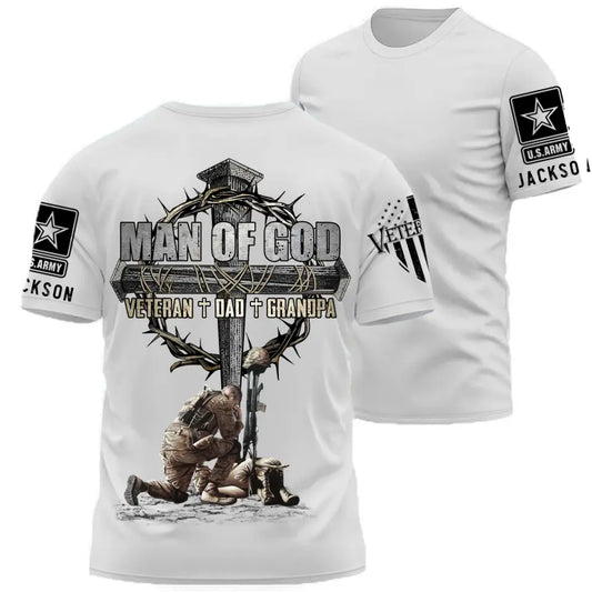 Man Of God Veteran Dad Papa Personalized Shirt For Father's Day Veteran Grandpa