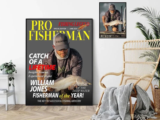 Custom Fishing Magazine Cover, Fishing Gifts for Men, Fly Fishing Gifts for Him, Fishing Dad Gift, Angler Funny Fisherman Gift,Gift for Boss