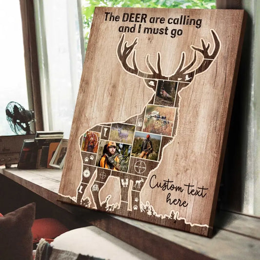Geschenke für Hirschjäger, personalisiertes Fotocollage-Leinwand-Jagdgeschenk für Männer, Hirsch-Wandkunst