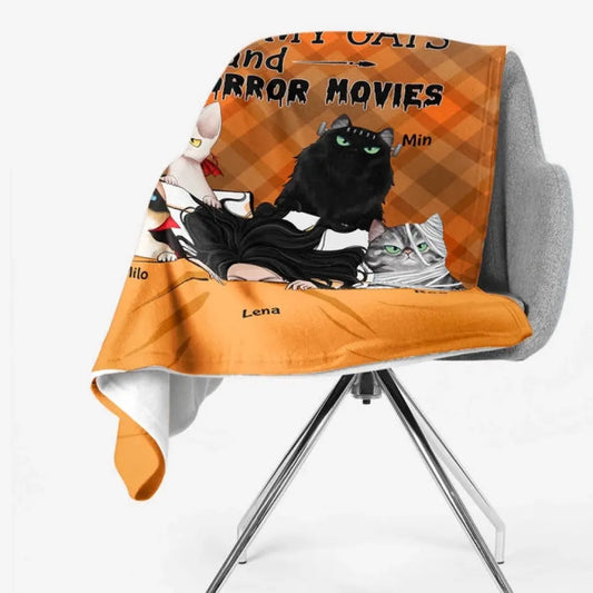 Kuscheln Sie meine Katzen und schauen Sie sich Horrorfilme an – personalisierte Decke