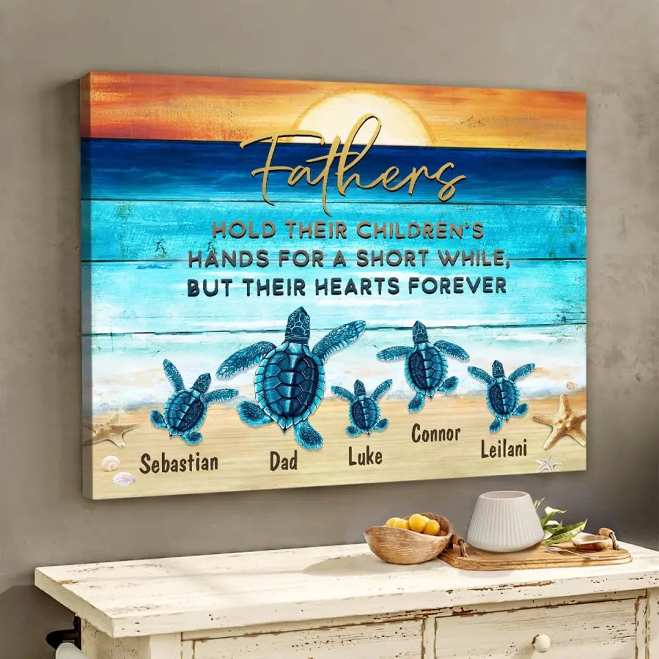 Available Product: Fathers Hold Their Children Canvas Art – Father’s Day Custom Sea Turtles Name