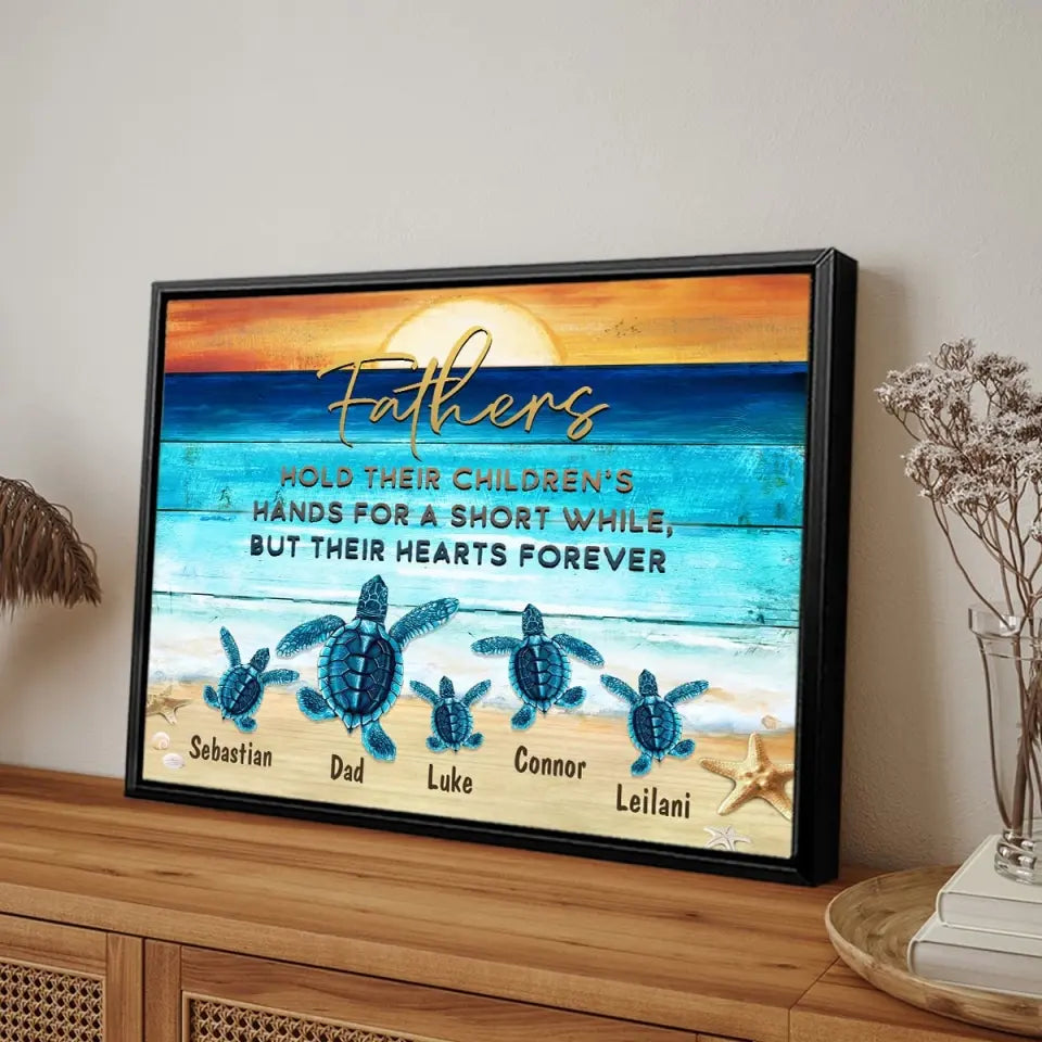 Fathers Hold Their Children Canvas Art – Father’s Day Custom Sea Turtles Name