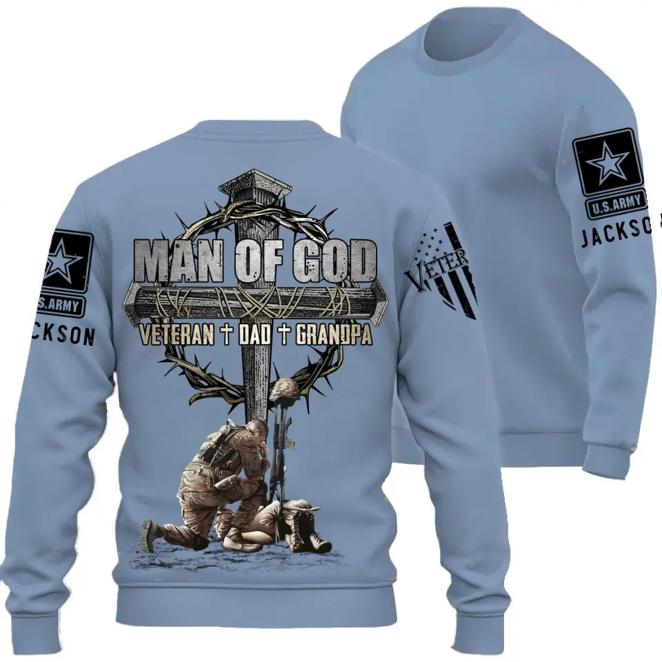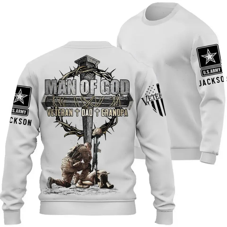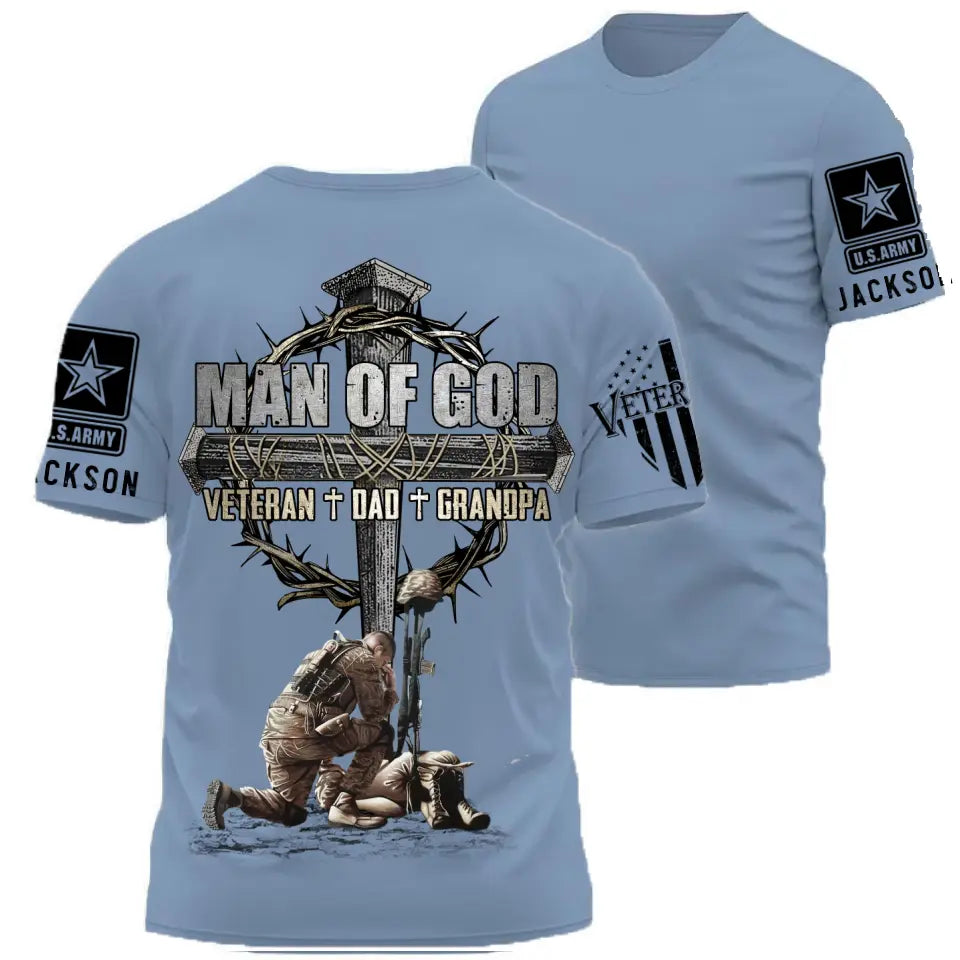 Man Of God Veteran Dad Papa Personalized Shirt For Father's Day Veteran Grandpa