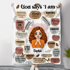 Verfügbares Produkt: Personalisierte Decke - Gott sagt, ich bin - Bedeutungsvolle Geburtstagsgeschenke