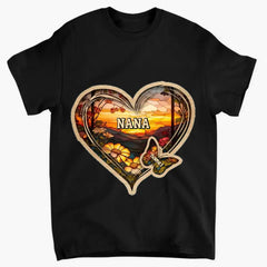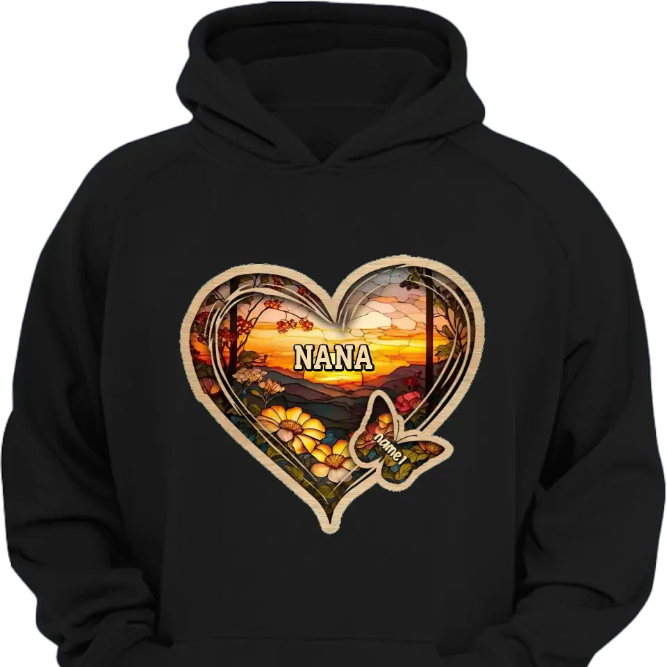 Personalisierte Weihnachtskleidung für Mama und Oma mit Schmetterlingsherz und Buntglasmuster