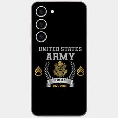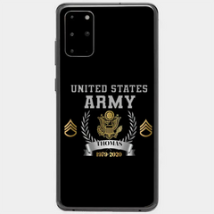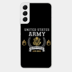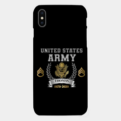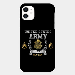 Personalisierte Handyhülle mit individuellem Namen und Uhrzeit im US-Armee-Rang-Camouflage-Design bedruckt
