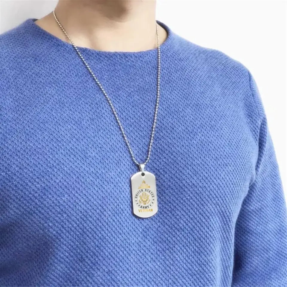 Personalisierte US-Armee-Veteranen-Rang-Camouflage-Halskette mit individuellem Namen und Uhrzeit, bedruckt