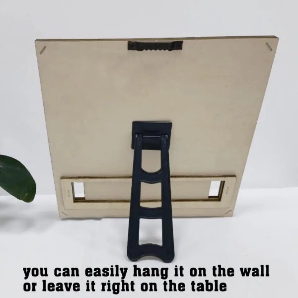 Hole cutout size: 1.3cm x 3cm (WxH) Comes ready to hang for your convenience with a sawtooth hanger and includes an easel back withstand.