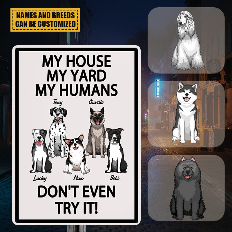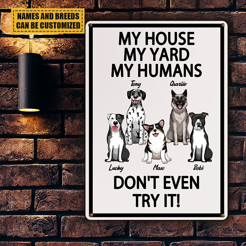 My House My Yard My Humans Don't Even Try It - Gift For Dog Lovers, Dog Dad, Dog Mom Personalized Custom Metal Sign