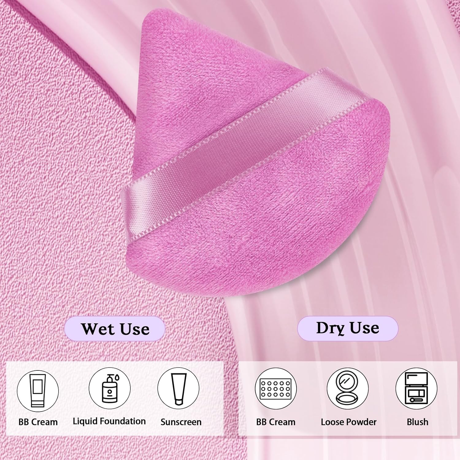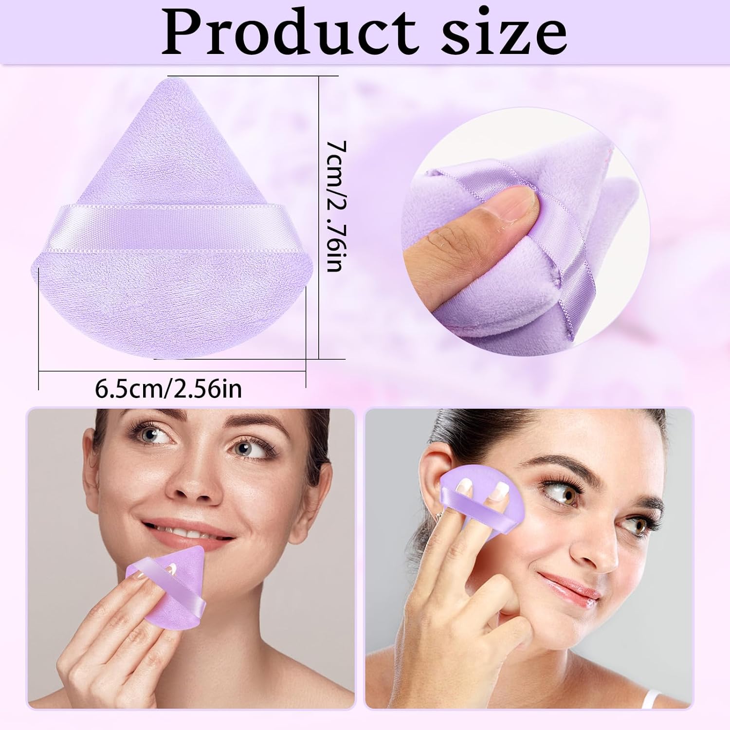 - Hold Well: Each powder puff measures about 2.76 inch/ 7 cm, the normal size can fits your hand well, each makeup puff comes with 1 strap for you to hold well and easier to use the powder applicator, the triangle shape makes the makeup on T-zone easier