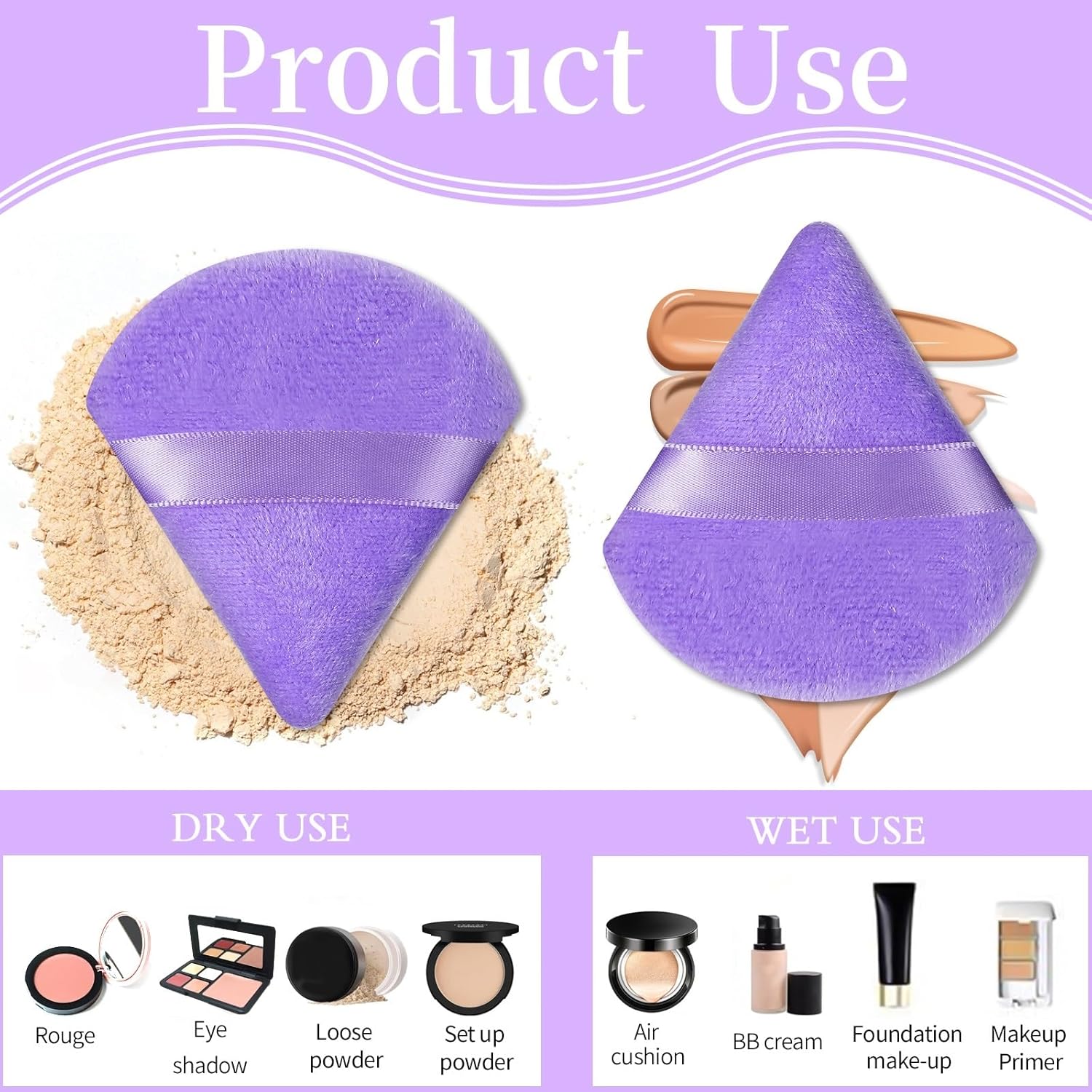 - Design: Our powder puff is actually designed with triangle and circle style, when you put the foundation on your cheeks and forehead, you can use the round side, when you put foundation on the eye and contour, you can choose the triangle side. Say goodbye to uneven makeup!